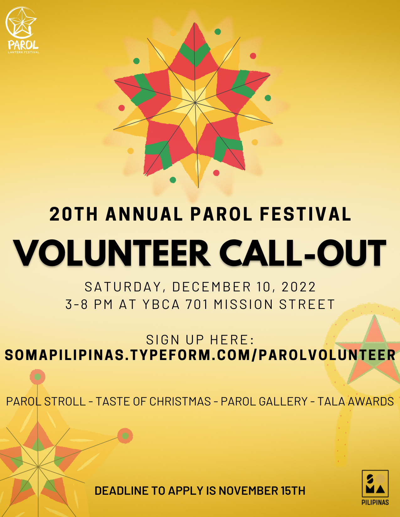 Sign up to volunteer with the SOMA Pilipinas community for our 20th Anniversary Parol Festival!