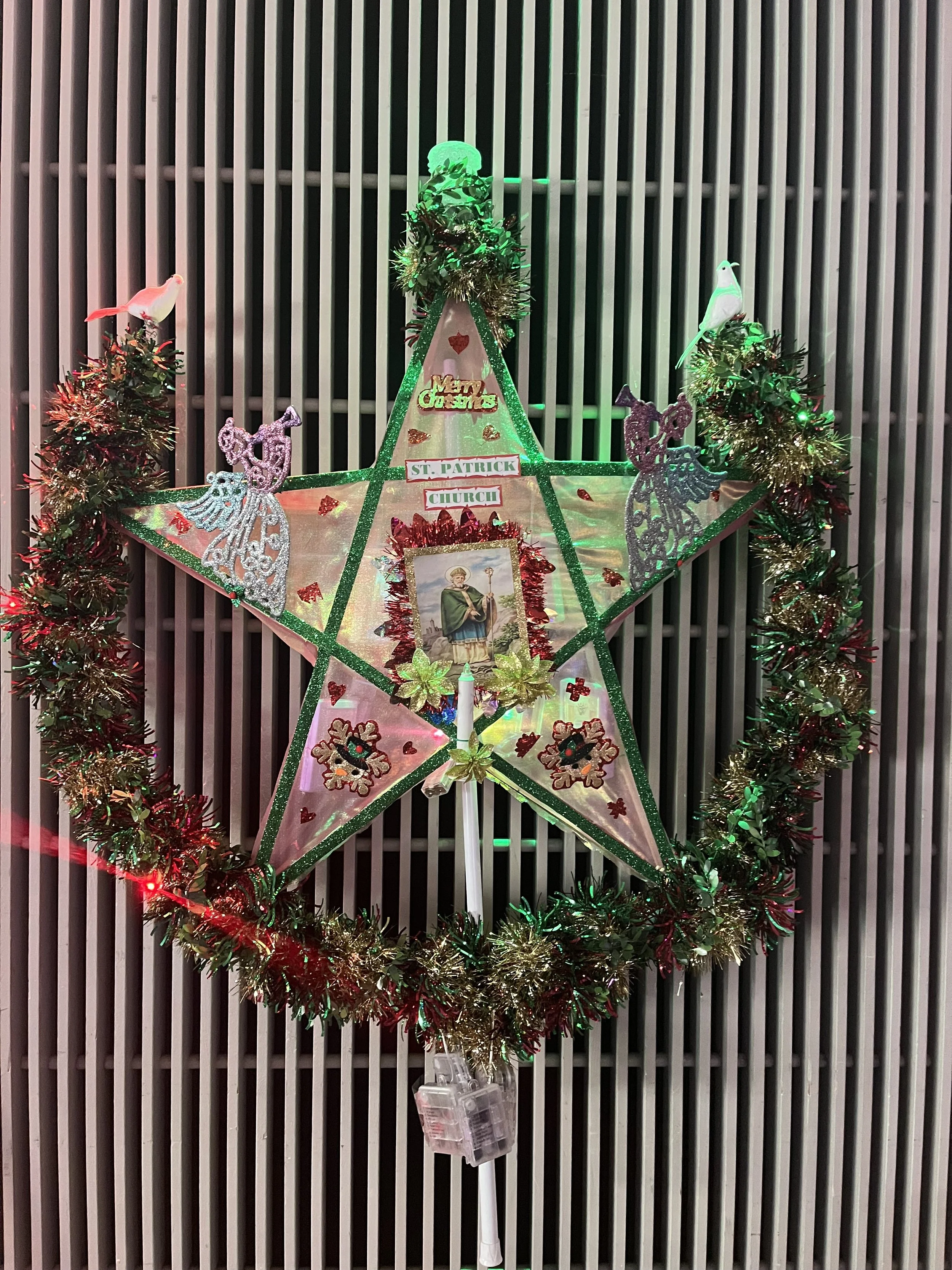The AnceSTAR - The design incorporates interlaced materials- a nod to the weaving traditions of Indigenous Filipino communities, and twinkling lights to inspire viewers to find light within themselves. As torchbearers, we honor the values and traditions passed down by our elders while reimagining them for the next generation. By weaving these materials and our stories together, we’re bridging generations through art. The AnceSTAR embraces a familiar framework with design elements reflective of our vibrant Fil-Am community that’s pushing boundaries and lighting the way as a beacon of hope.