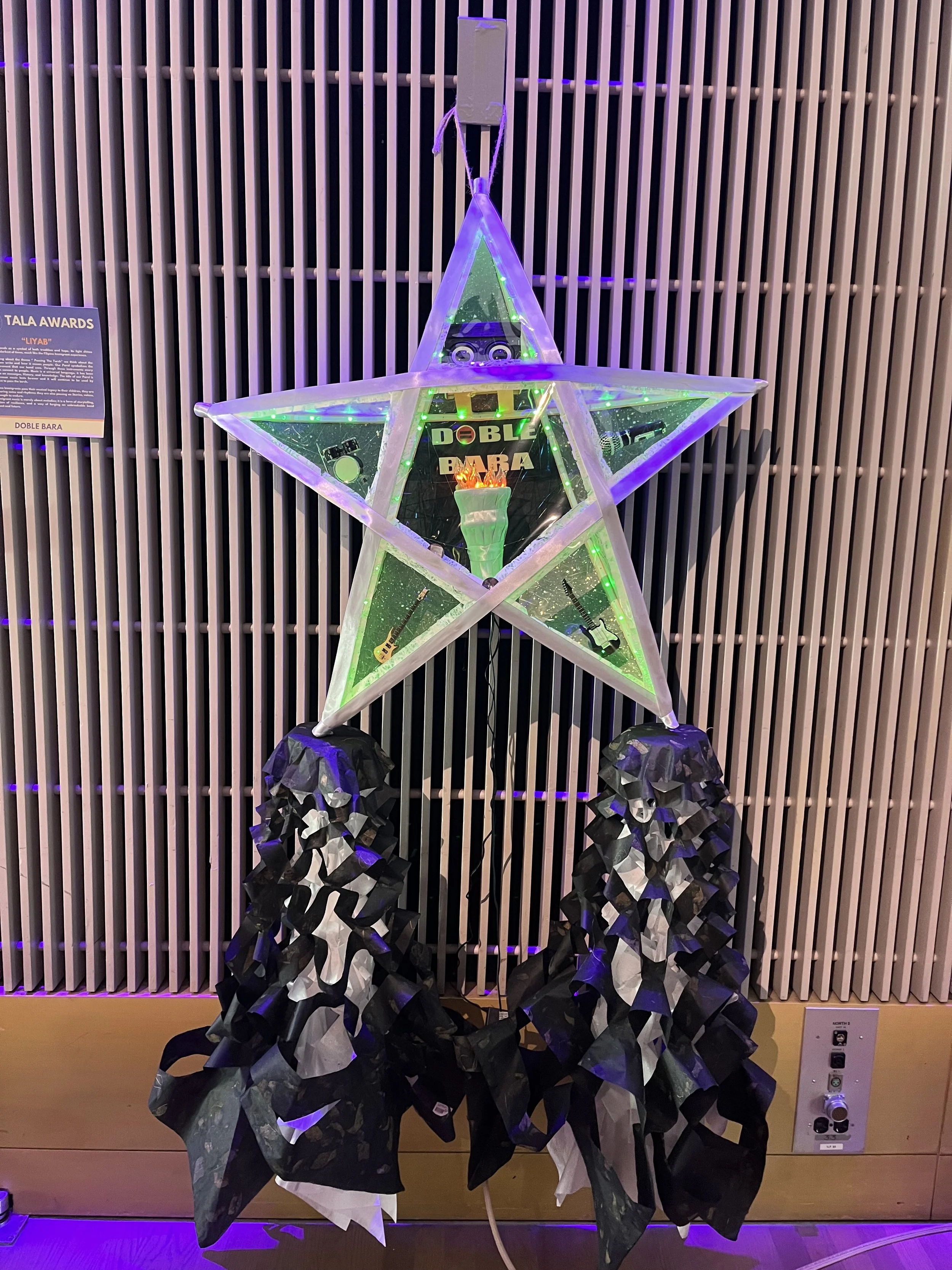 The Parol stands as a symbol of both tradition and hope. Its light shines through the darkest of times, much like the Filipino Immigrant experience. When thinking about the theme “ Passing The Torch” we think about the music that we write and how it moves people. Our Parol symbolizes the musical instrument that our band uses. Through these instruments every member can connect to people. Music is a universal language, it has been used to pass on messages, History, and knowledge. The title of our Parol is “LIYAB” because music lasts forever and it will continue to be used by People/Artist to pass the torch. When Filipino Immigrants pass their musical legacy to their children, they are not only sharing notes and rhythms; they are also passing on Stories, values, and the strength to endure. Filipino immigrant music is merely about melodies; it is a form of storytelling, a declaration of resilience, and a way of forging an unbreakable bond between past and future.